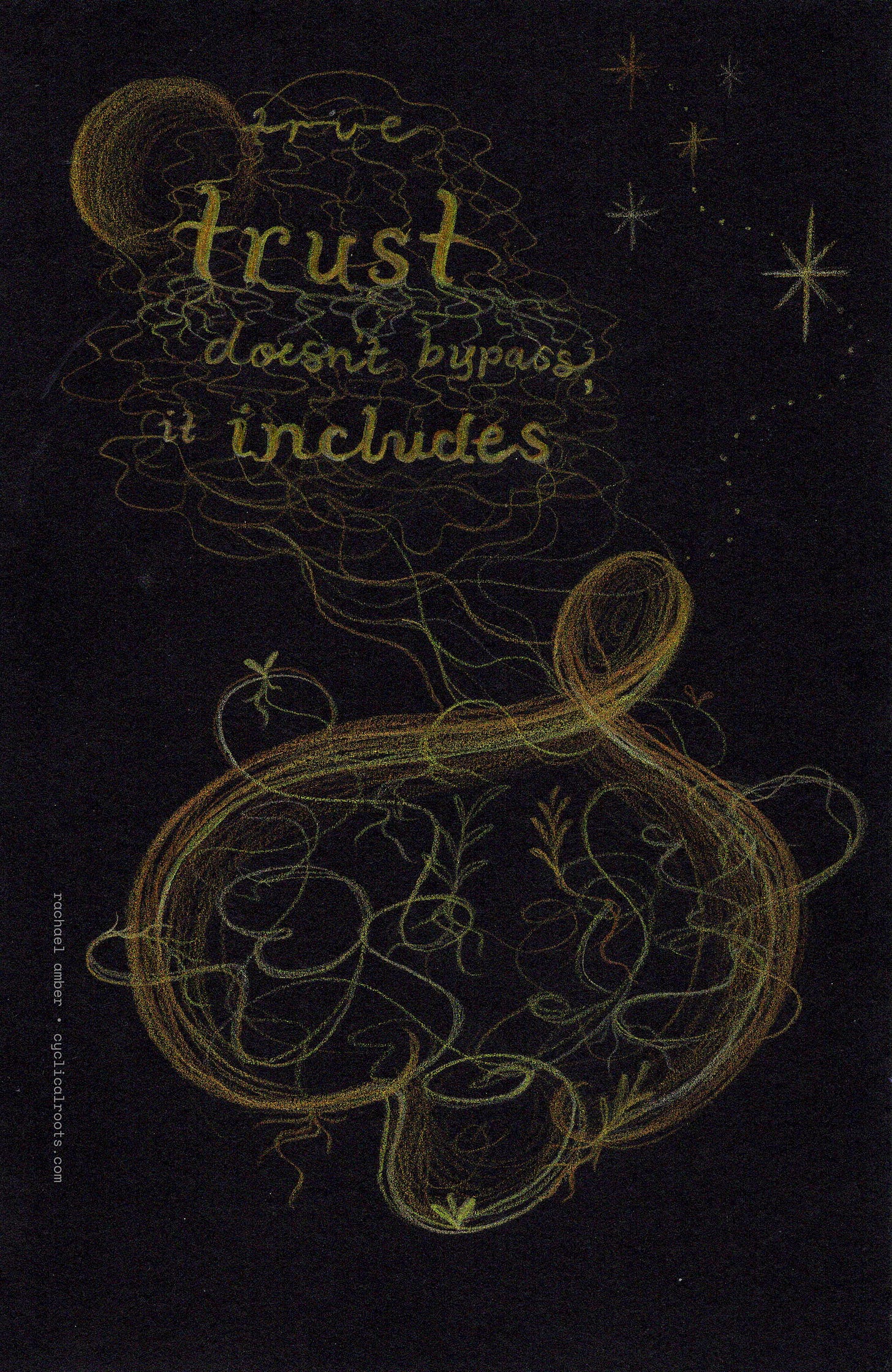 May you find ways and time to practice reacquainting yourself with what true trust feels like – the kind that lives in the mycelium beneath soil and skin always.